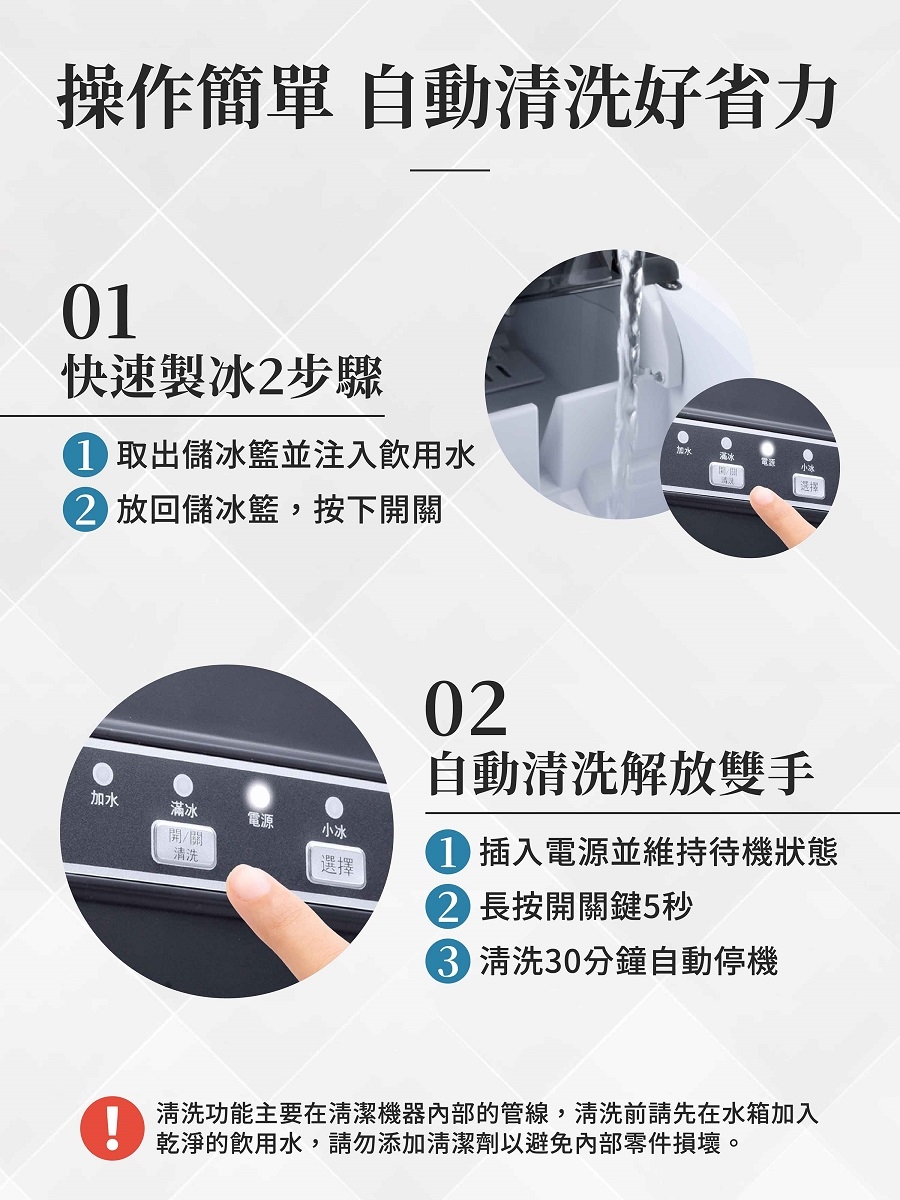 .一鍵自動清洗功能 (沖洗清潔內部管線)