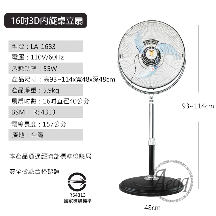 【LAPOLO】16吋3D內旋桌立扇(LA-1683)
