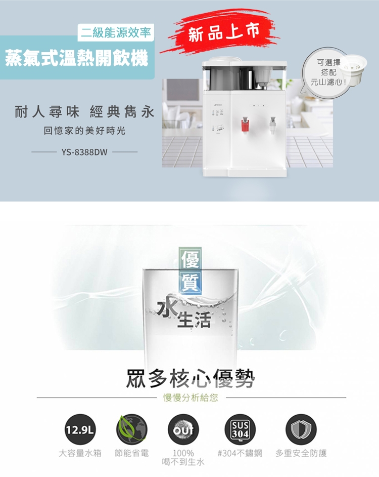 【元山牌】12.9L蒸汽式溫熱開飲機(YS-8388DW)