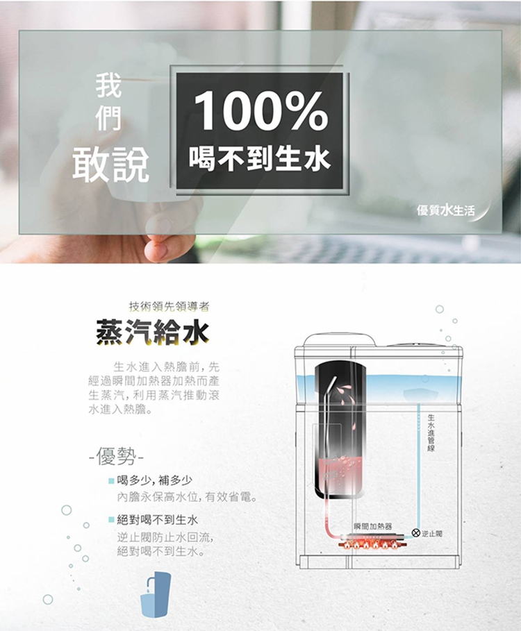 再沸騰、自動除氯功能,操作容易