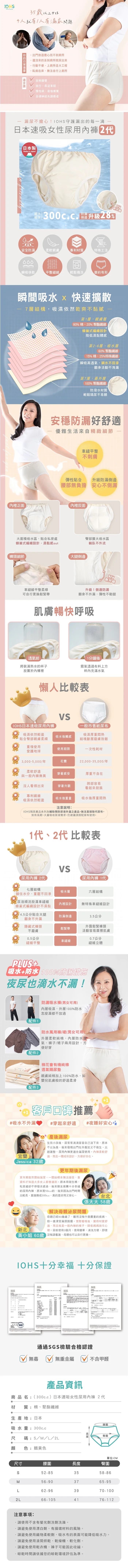 ◆ 包裝:日本速吸女性尿用內褲300CC*1入+成人布尿布200CC*1入