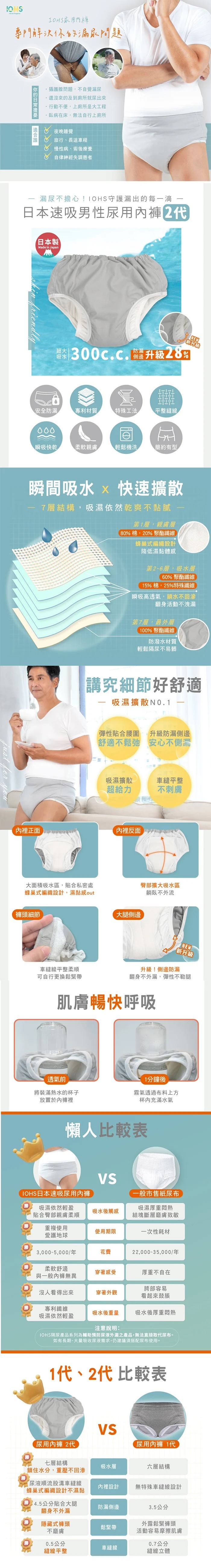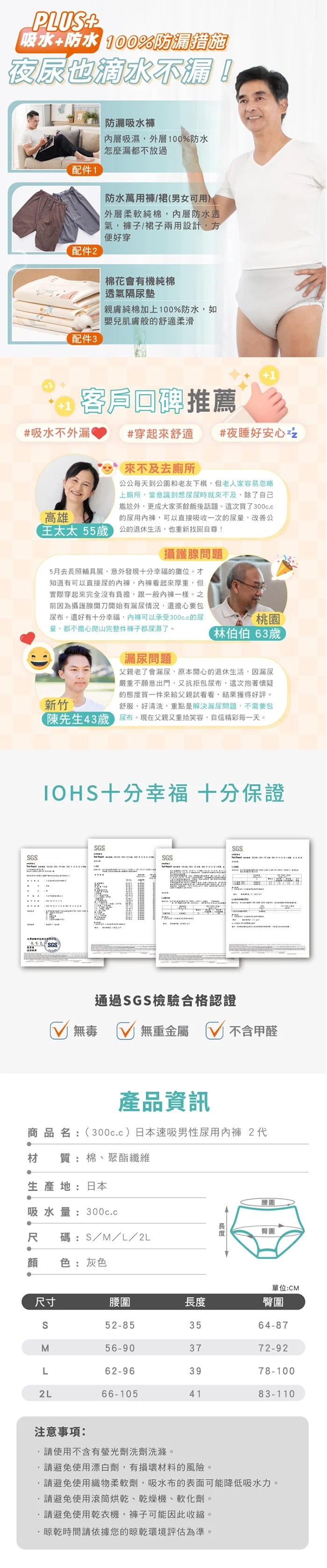 ◆ 包裝:速吸男性尿用內褲300CC*1入+成人布尿布200CC*1入