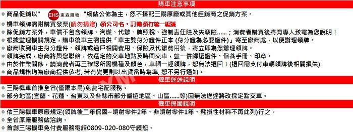 ◎ 保固兩年,保固內如有任何問題請撥打三陽客服 0809-020-080