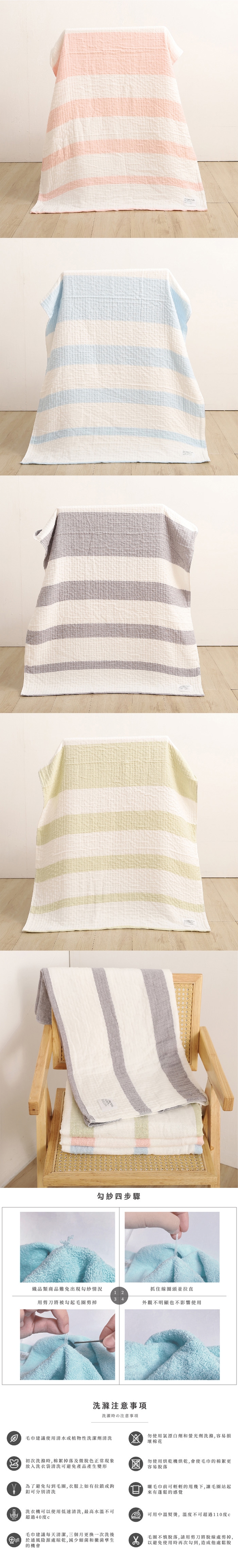 品名 : 60支紗彩條多層紗布速乾純棉浴巾