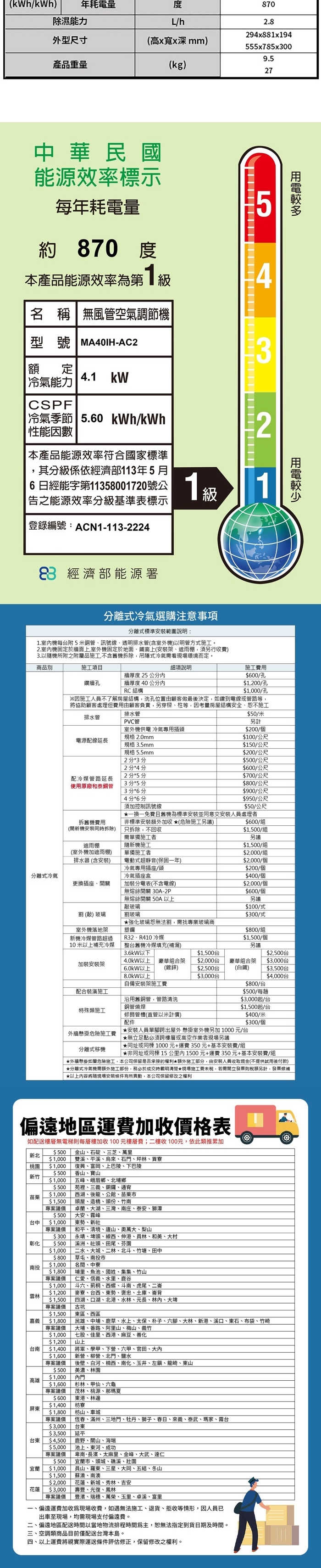 冷氣季節性能因數CSPF:5.6(kWh/kWh)