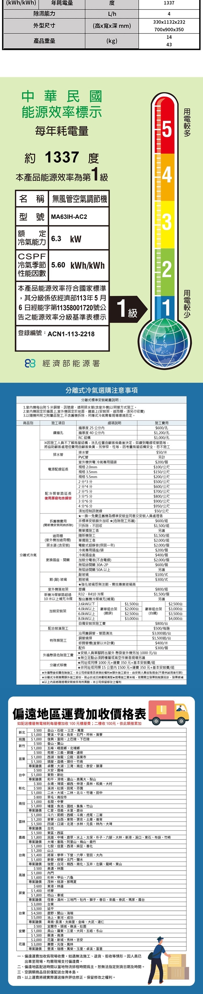 冷氣季節性能因數CSPF:5.6(kWh/kWh)