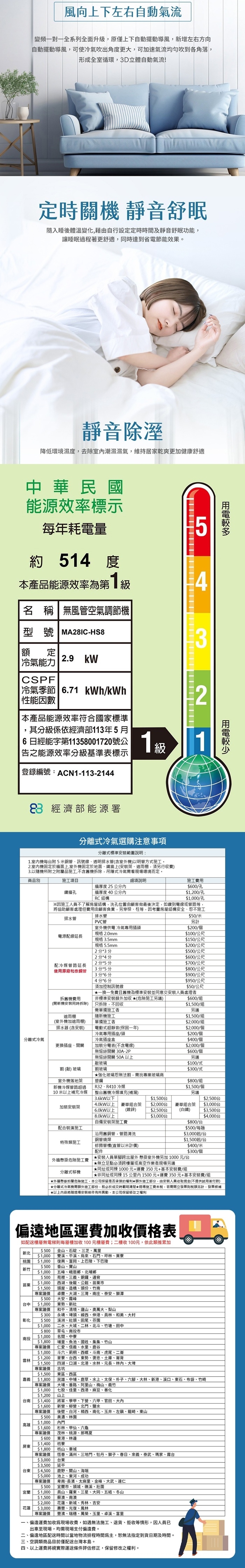 CSPF冷氣季節 (kWh/kWh):6.65