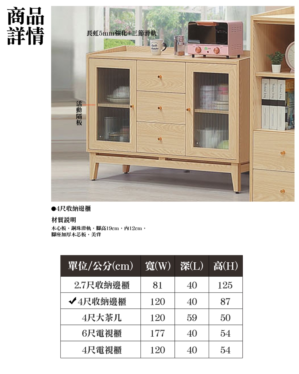 ※此賣場僅販售 伊利喬4尺收納邊櫃※