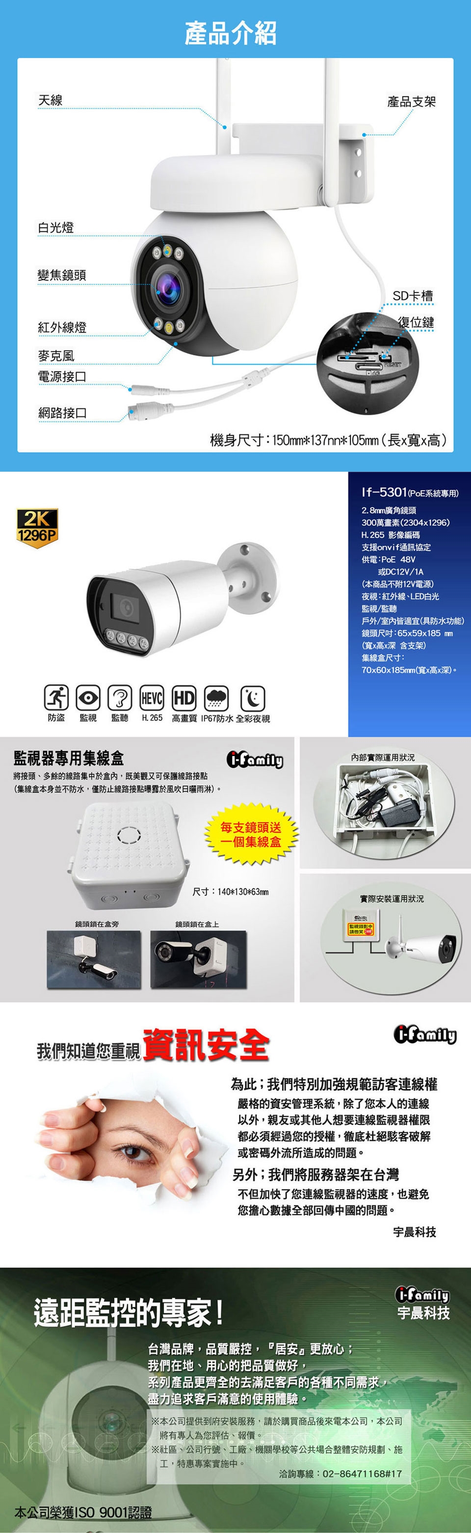 ※每支鏡頭附贈集線盒一個,除了美觀外還保護電源接頭免受風雨侵蝕;