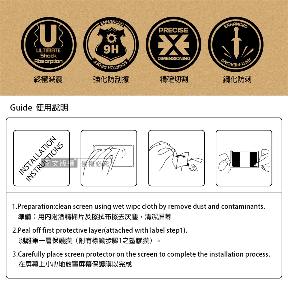 保護貼屬一次性商品,請務必先比對手機、平板孔位、大小是否符合需求,再行使用;如底膜撕除後恕無法進行退換貨處理。