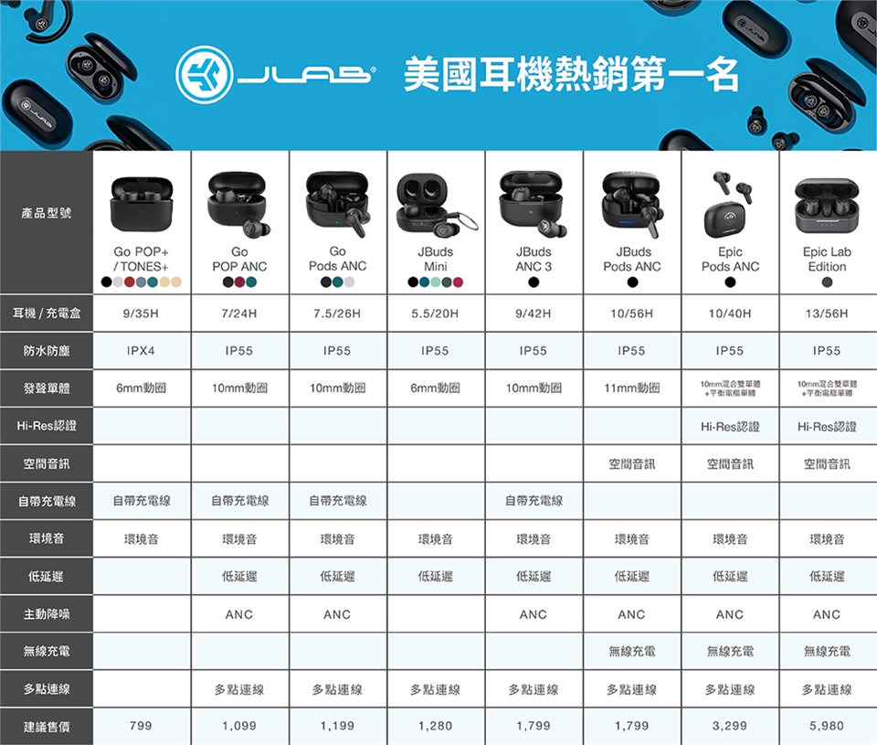 - 產品型號:JLab JBuds Pods ANC 降噪真無線藍牙耳機