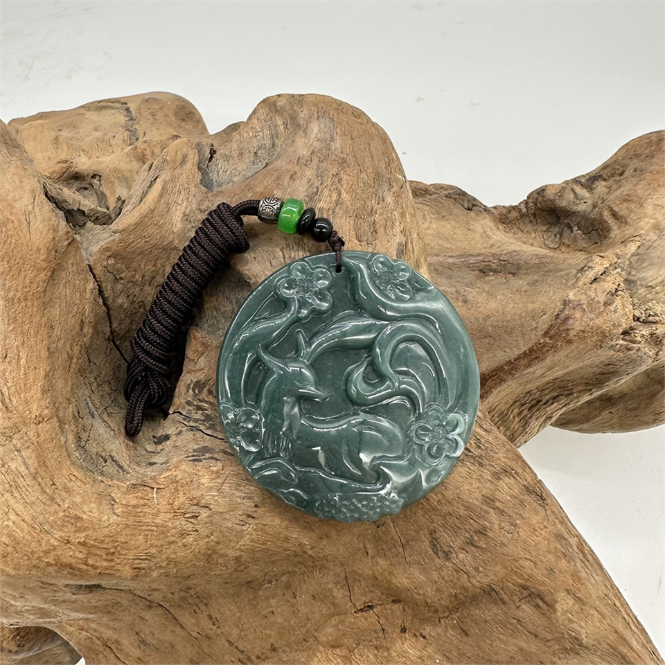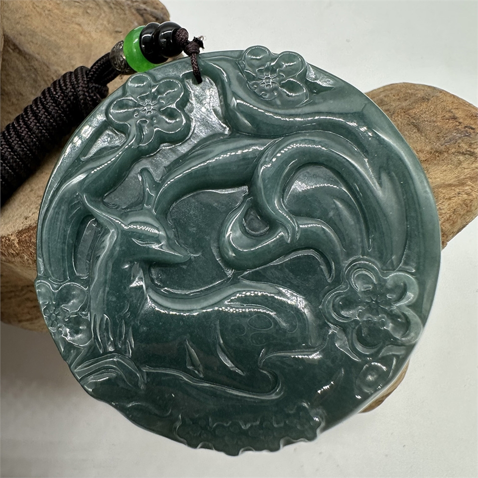 【肌容雪】天然翡翠A貨九尾狐造型掛墜附錦盒 編號996