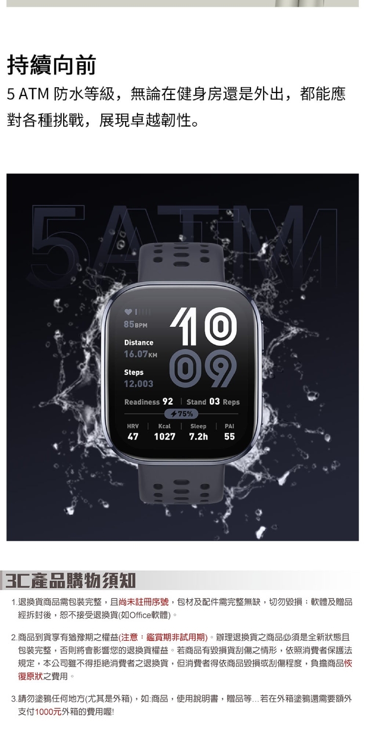 手錶主機(含標準錶帶)、專用充電底座(不含充電線)、產品說明書