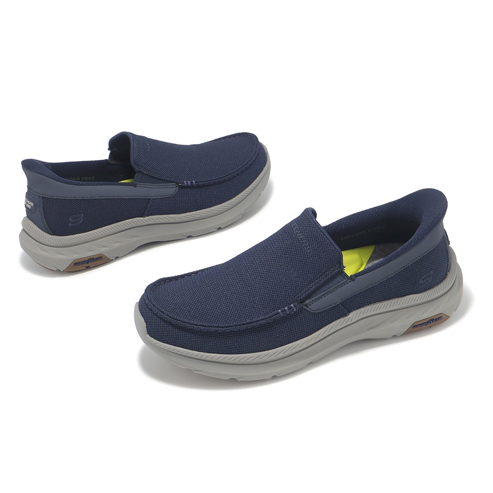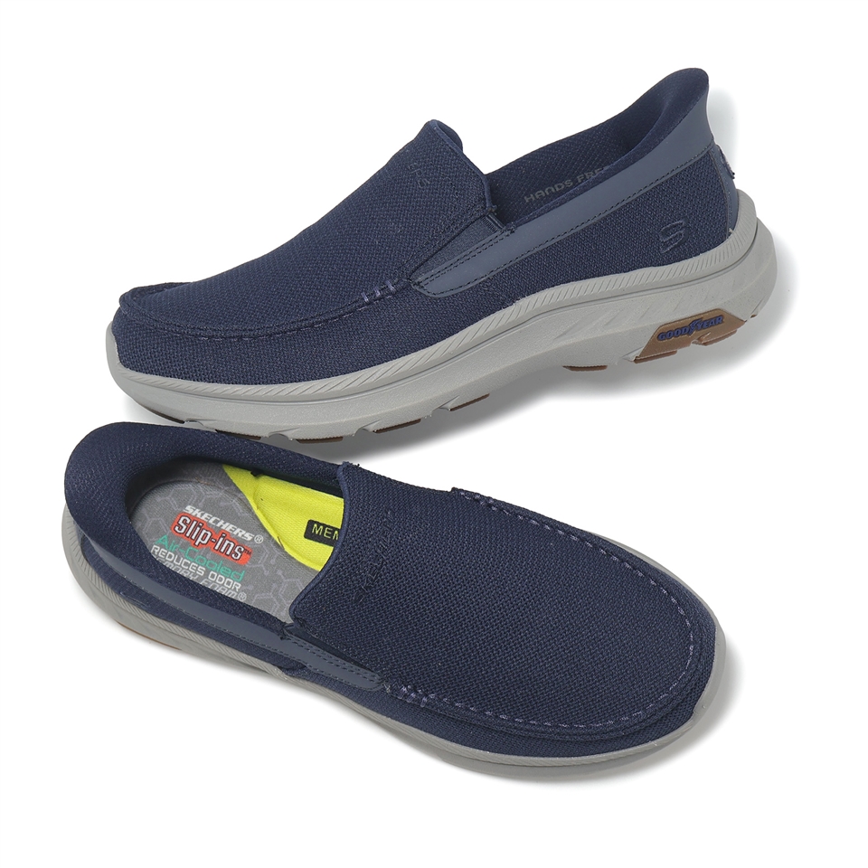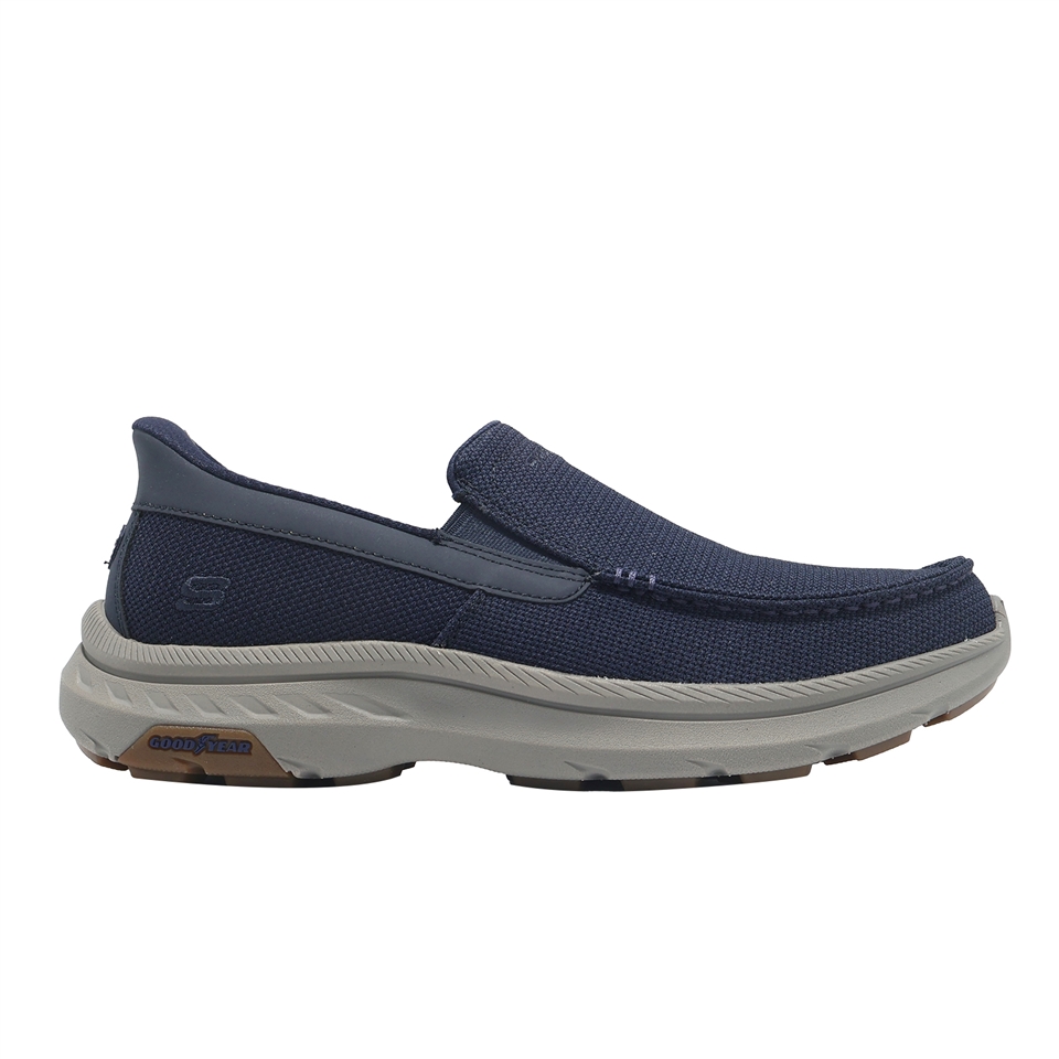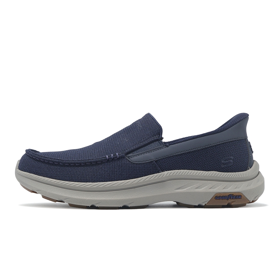 * 融合經典休閒風格與輕鬆舒適,這款無鞋帶款式採用Heel Pillow™ 鞋跟設計,網眼針織鞋面搭配鬆緊帶拼接,搭配Skechers Air-Cooled Memory Foam® 記憶泡棉鞋墊、Memory Arch™ 記憶拱形鞋墊和耐用的 Goodyear® 橡膠外底。