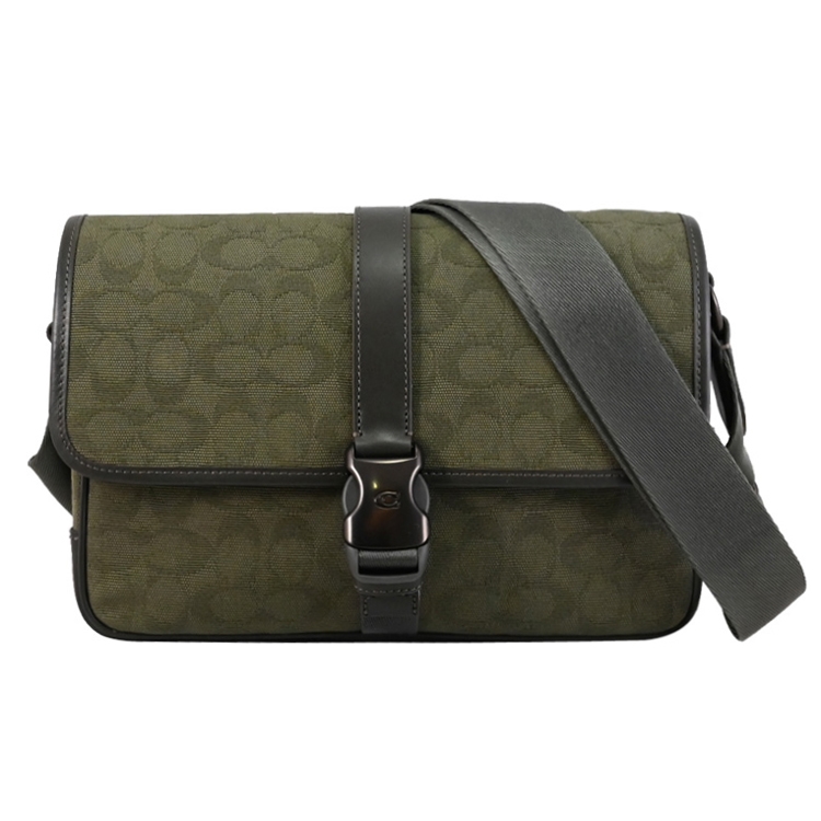 COACH專櫃款,與專櫃同步,新款League斜背包系列,採用經典LOGO緹花拼接皮革設計,翻蓋開口,內有3內袋+前側1貼袋,外有1磁吸貼袋供收納,內可放長夾、手機或小摺疊傘等隨身物品,超夯包款,釋放都會簡約個性風格,不論是外出或旅遊皆為實用。