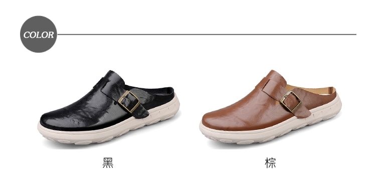 【Adonis】真皮輕量包頭拖鞋/真皮時尚皮帶釦飾輕量包頭拖鞋 男鞋 黑