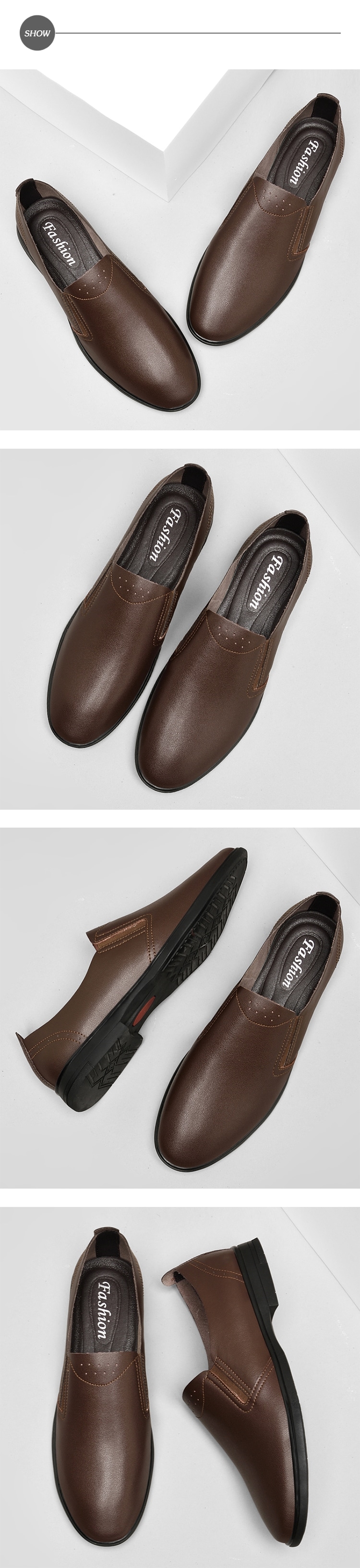 【ANSEL】真皮光面低跟樂福鞋/真皮光面懶人套腳低跟樂福鞋 休閒鞋 男鞋 棕