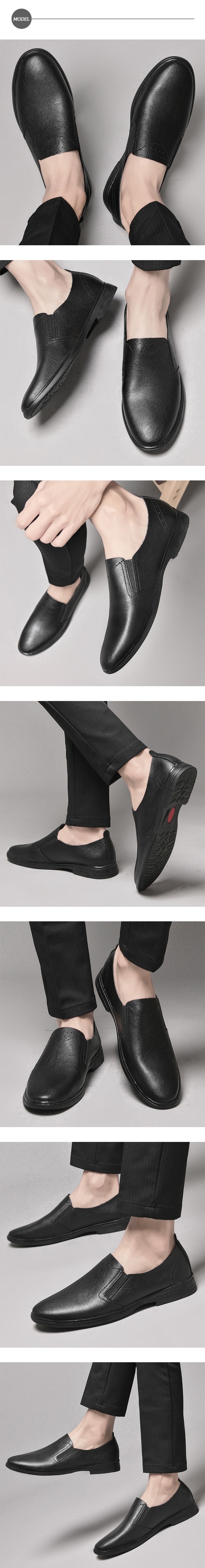 【ANSEL】真皮手抓紋低跟休閒樂福鞋/真皮手抓紋懶人套腳低跟樂福鞋 休閒鞋 男鞋 黑