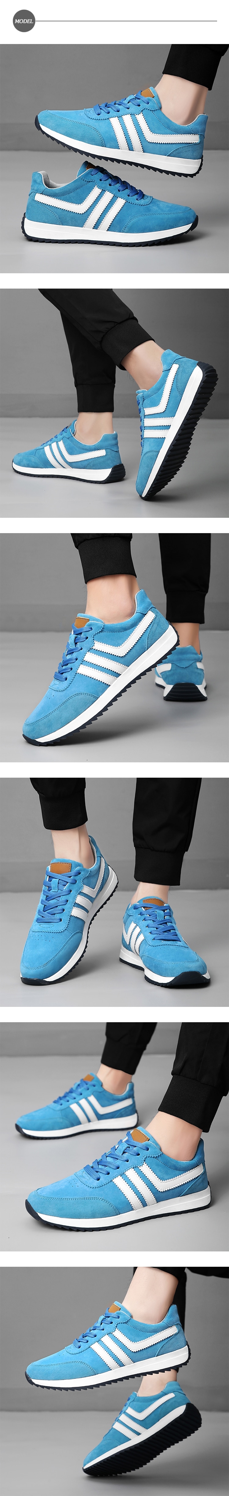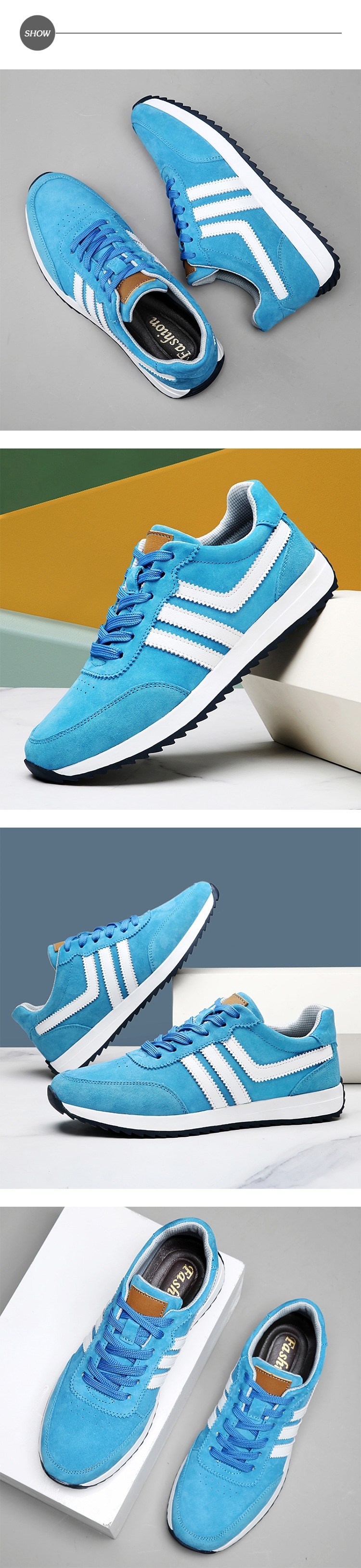 【Adonis】真皮撞色休閒運動鞋/真皮頭層翻絨皮革撞色線條拼接休閒運動鞋 男鞋 藍