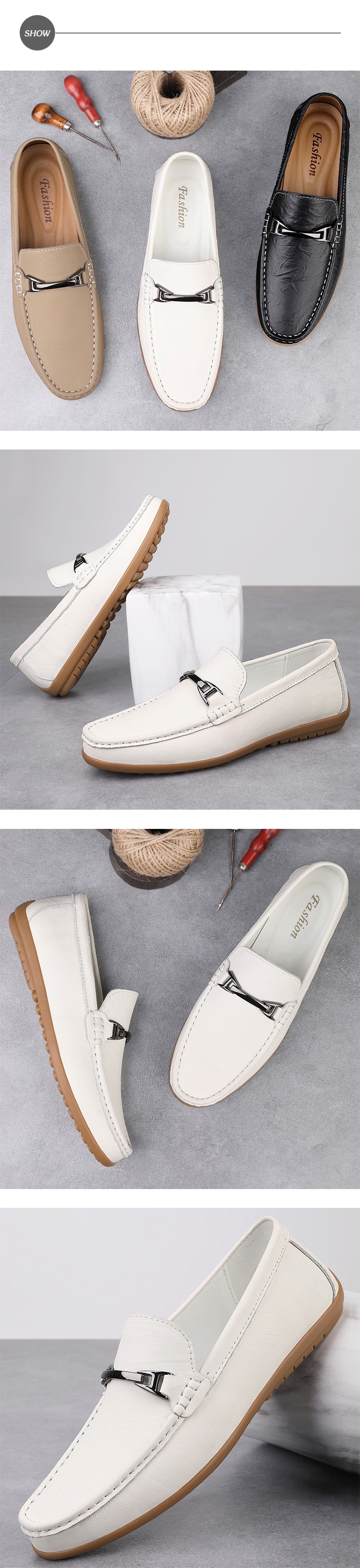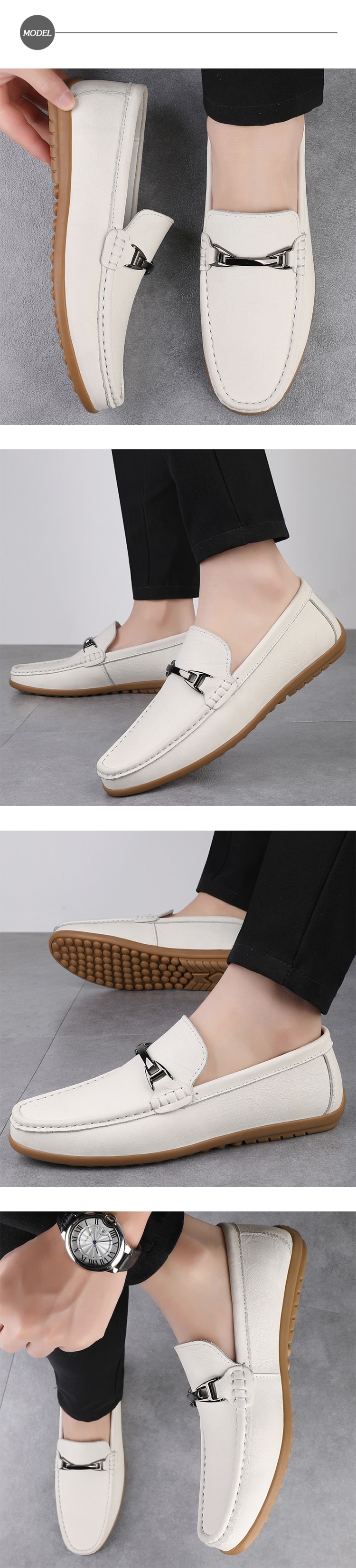 【ANSEL】真皮馬銜釦軟底樂福鞋/真皮頭層牛皮金屬馬銜釦飾軟底豆豆鞋 駕車鞋 樂福鞋 男鞋 白