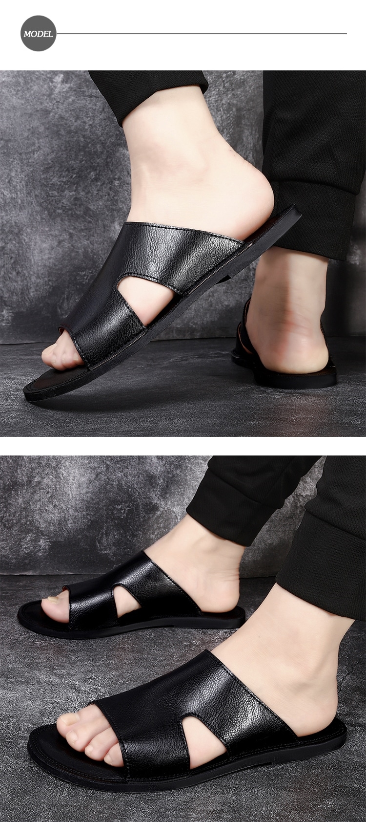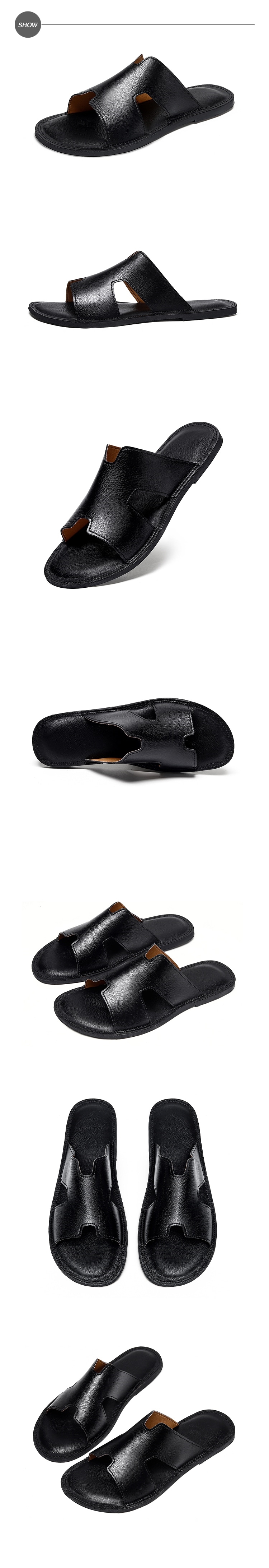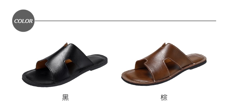 【ANSEL】真皮車縫線平底拖鞋/真皮百搭車縫線個性平底拖鞋 男鞋 黑