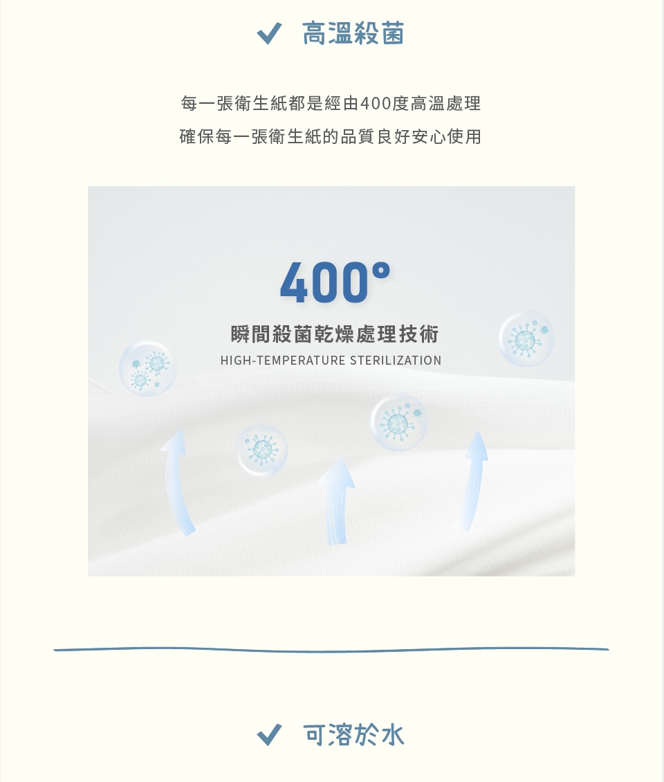 每一張都是經過400度高溫殺菌,讓您使用更安心。