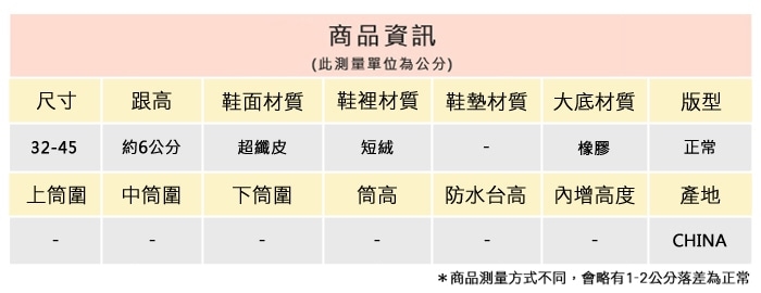 2.鞋類商品依功能及用途之不同,鞋底各有其止滑係數之個別不同,使用鞋類商品請用於正常平坦之路面,非雨鞋或雨靴類商品,請避免穿著於下雨濕滑路面上行走。