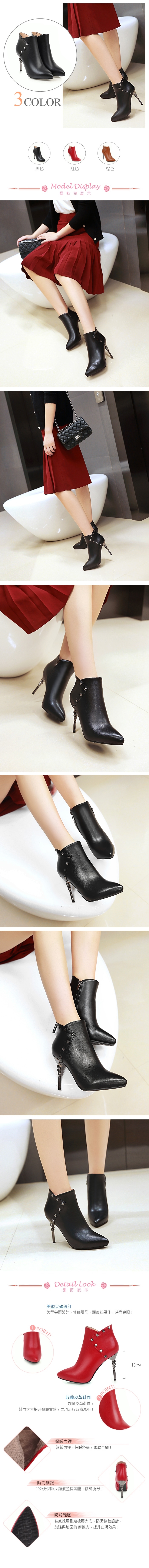 【KISSXXX】幾何拼接鉚釘細高跟短靴/幾何拼接鉚釘造型細高跟短靴 女鞋 黑