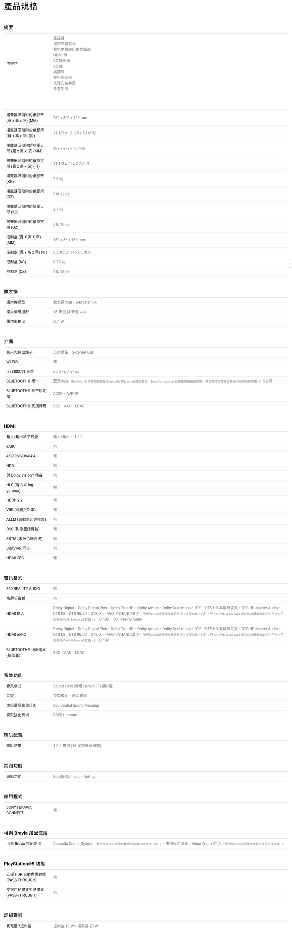 以上規格資料若有任何錯誤,以原廠所公佈資料為準