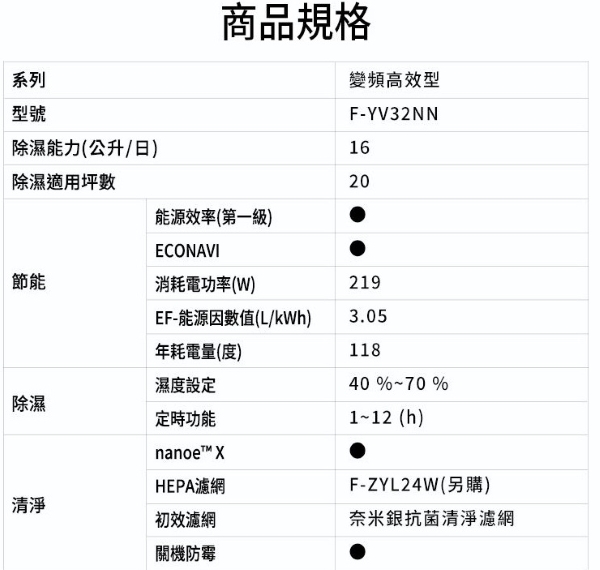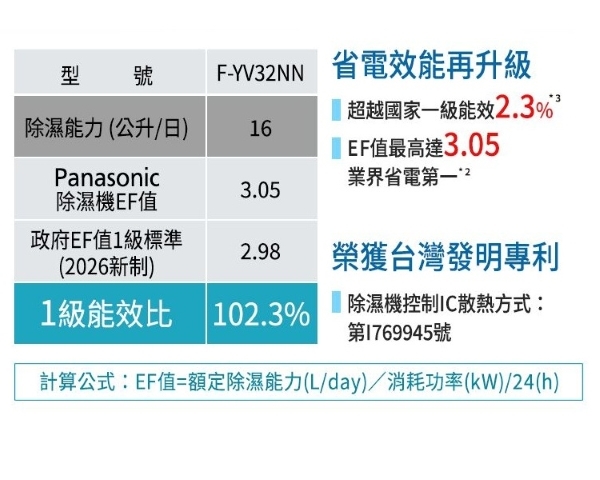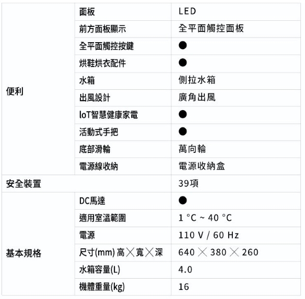 除濕能力 16公升/日(室溫27°C/相對濕度60%)