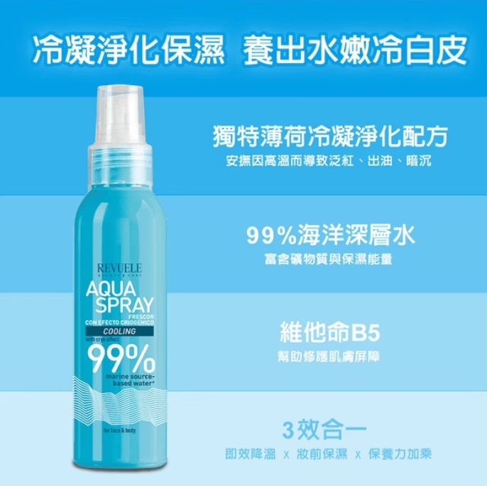一款多重功能的化妝水噴霧,海洋深層水為基底富含礦物質、維他命B5幫助修護肌膚屏障補足水分