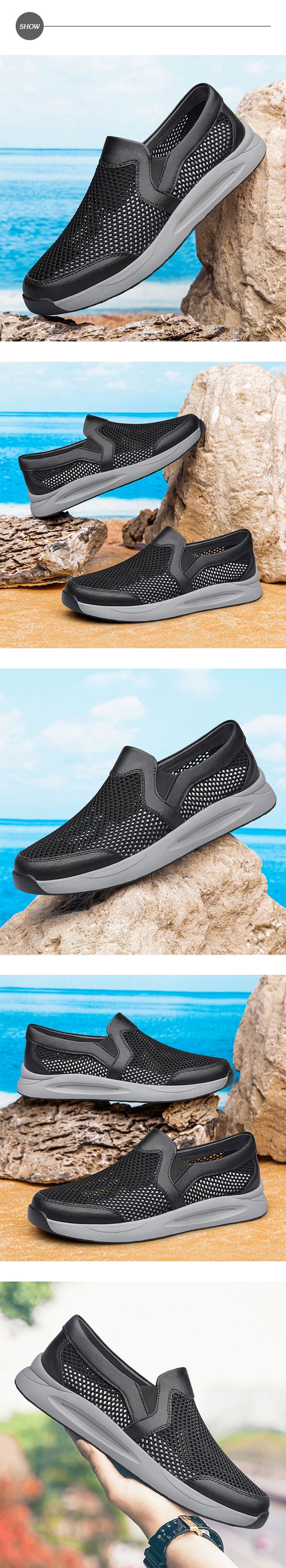 【SPRING】真皮網布拼接樂福鞋/真皮透氣網布拼接百搭休閒樂福鞋 男鞋 黑