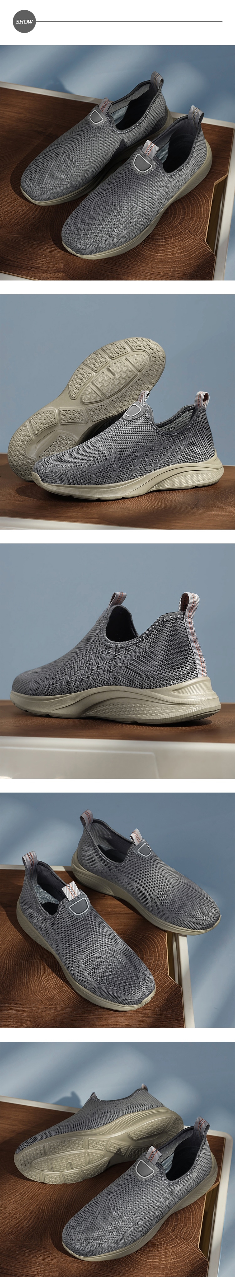 【SPRING】飛織網布戶外休閒鞋/輕透軟彈舒適飛織網布透氣戶外休閒鞋 男鞋 灰