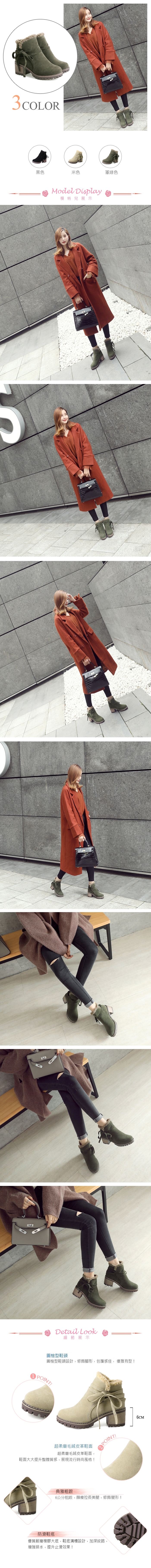【KISSXXX】蝴蝶結粗跟短靴/可愛毛絨靴口蝴蝶結綁帶粗跟短靴 女鞋 軍綠