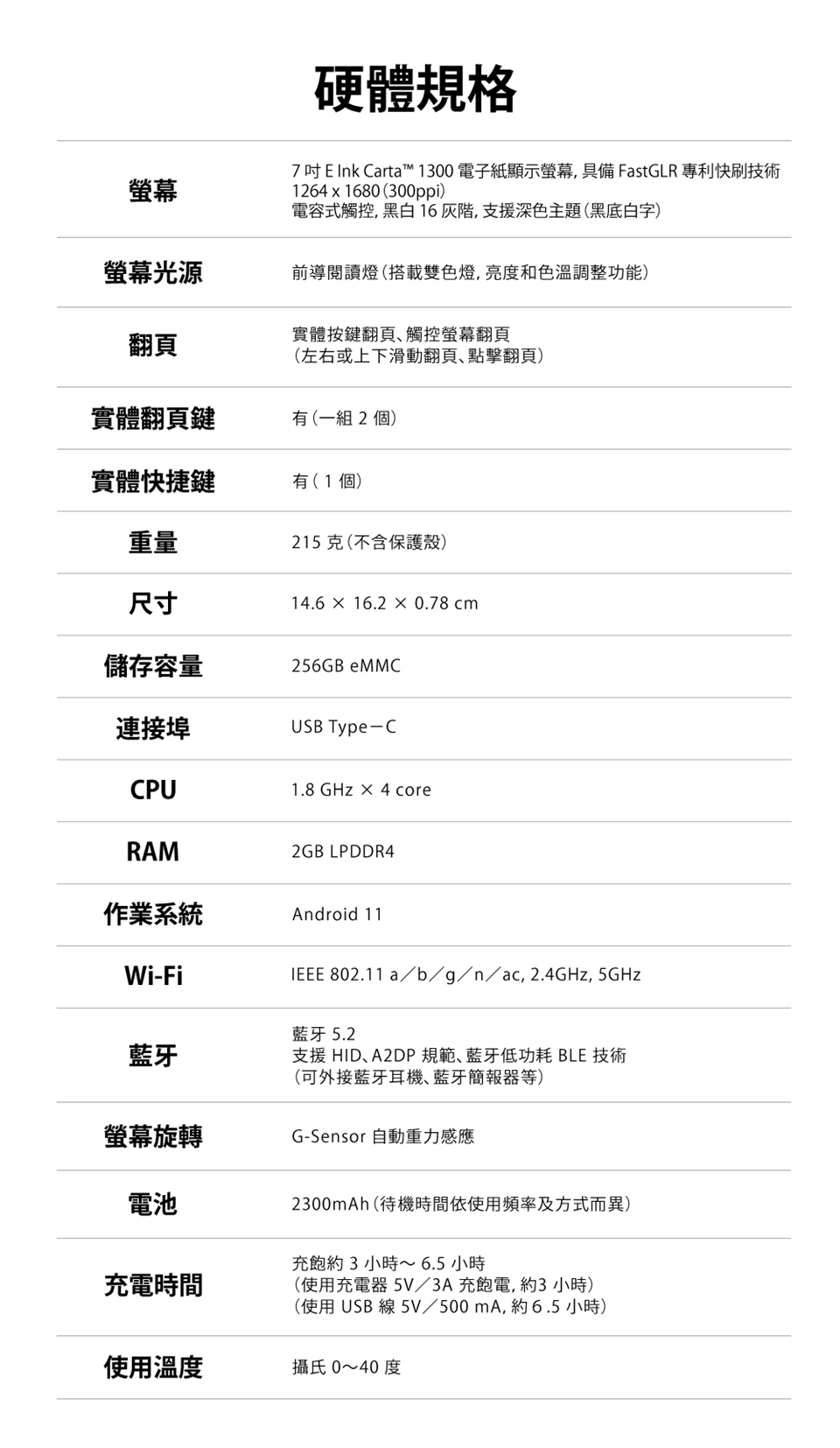 | 適用機型:10.3" MOOINK PRO2/10.3" MOOINK PRO2C(彩色)/10.3" Color Note/13.3" MOOINK PRO2/13.3" MOOINK PRO 2C (彩色) | |