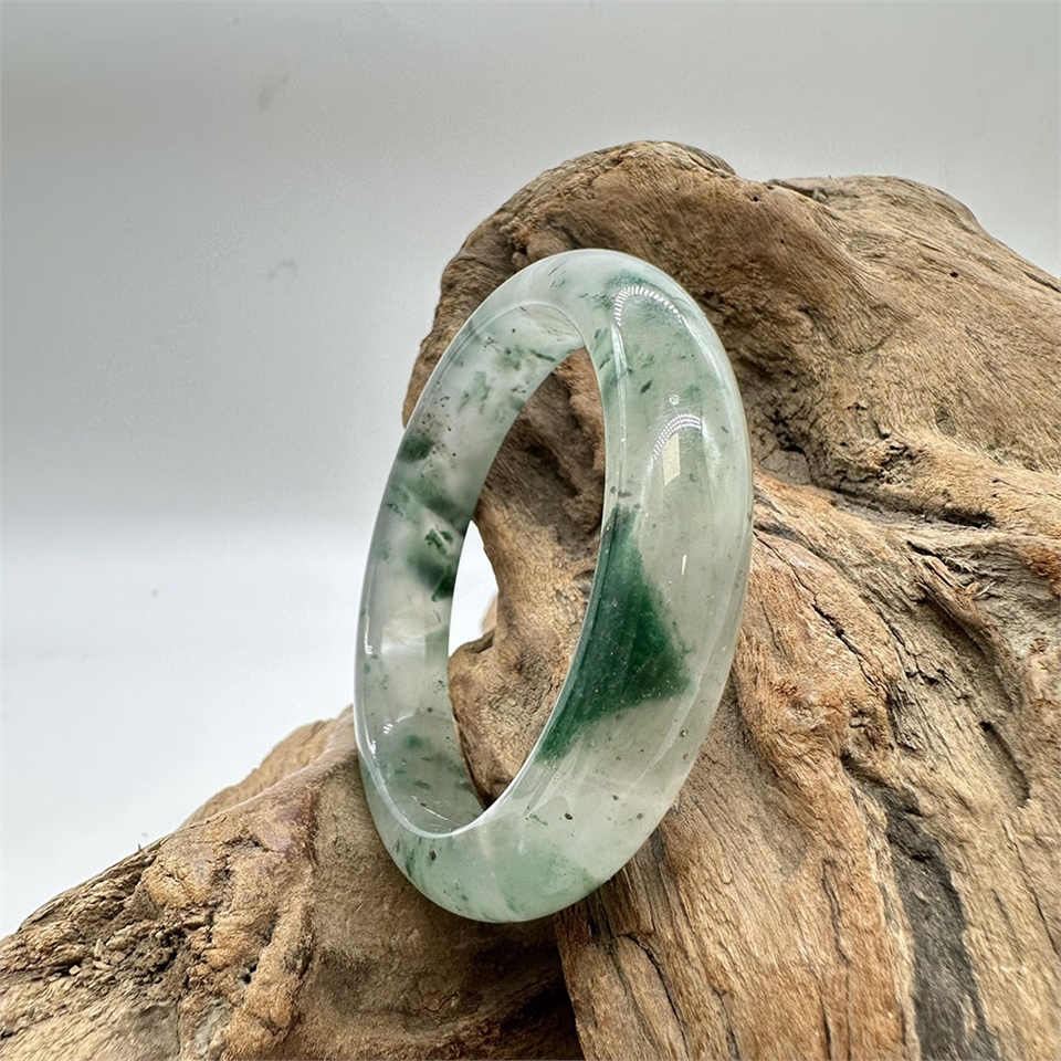 【肌容雪】天然非洲翠-冰雪飄花翠鐲 編號F01