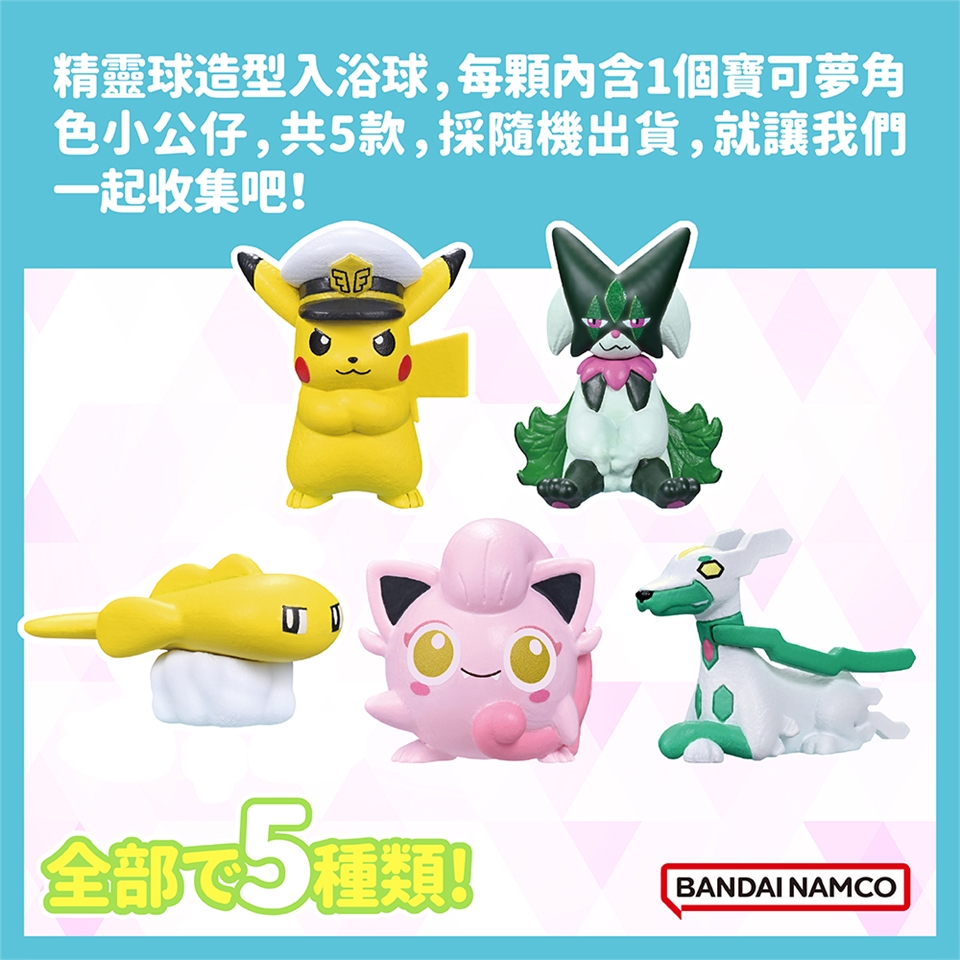 精靈球造型入浴劑,每顆內含1個寶可夢角色小公仔,將入浴球放入水中溶化後,小公仔就會浮出水面喔!