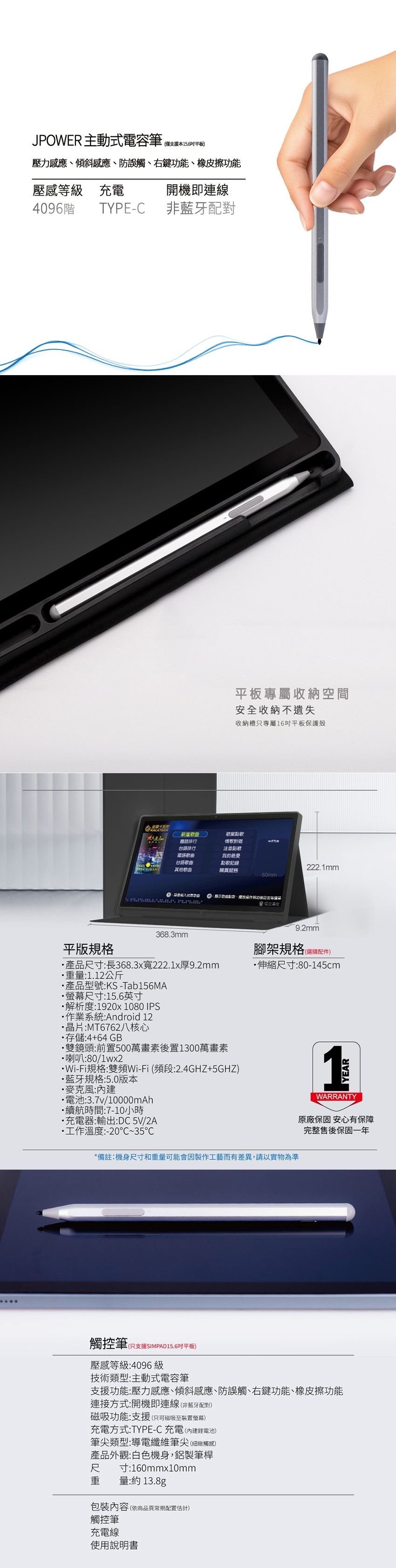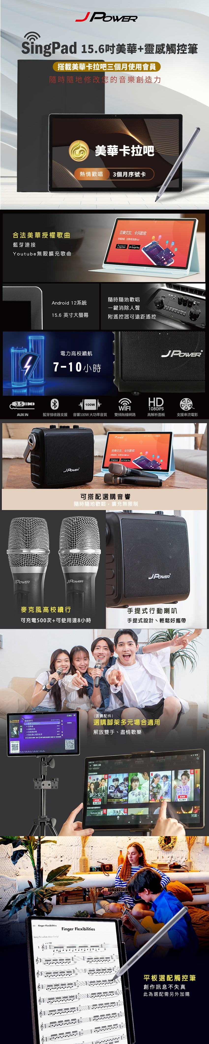 JPOWER 杰強 SingPAD 美華點歌平板+電子譜專用觸控筆(美華三個月序號 點歌平板)(編號:KS-Tab156MA/JP-AV-TABPEN01)