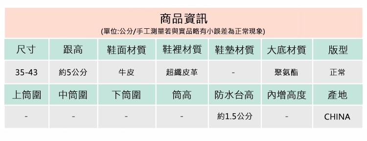 2.鞋類商品依功能及用途之不同,鞋底各有其止滑係數之個別不同,使用鞋類商品請用於正常平坦之路面,非雨鞋或雨靴類商品,請避免穿著於下雨濕滑路面上行走。