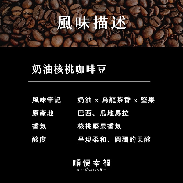 順便幸福 典藏罐裝咖啡豆-奶油核桃-規格說明: