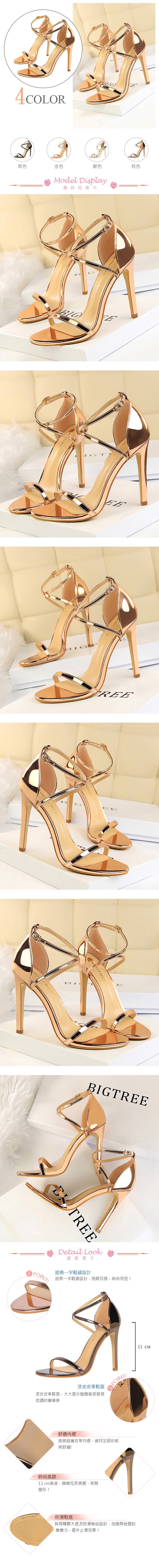 【KISSXXX】一字高跟繫帶涼鞋/優雅一字交叉線條高跟繫帶涼鞋 女鞋 金