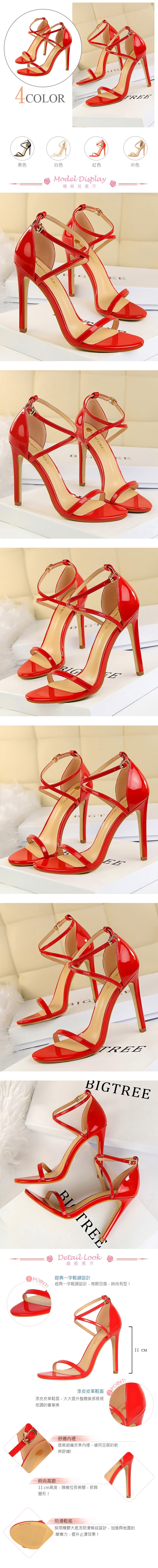 【KISSXXX】漆皮一字繫帶高跟涼鞋/時尚漆皮一字交叉繫帶高跟涼鞋 女鞋 紅