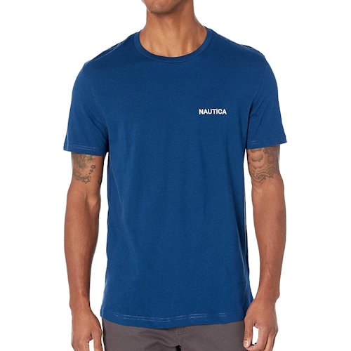 【NAUTICA】2025男時尚棉質靛藍色圓領短袖T恤