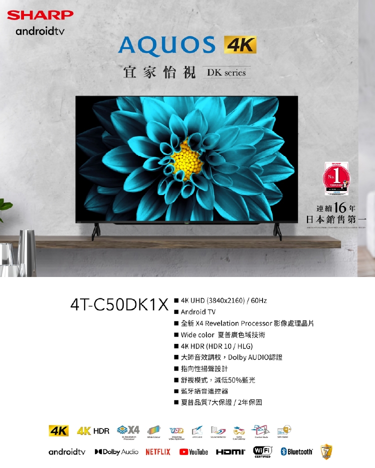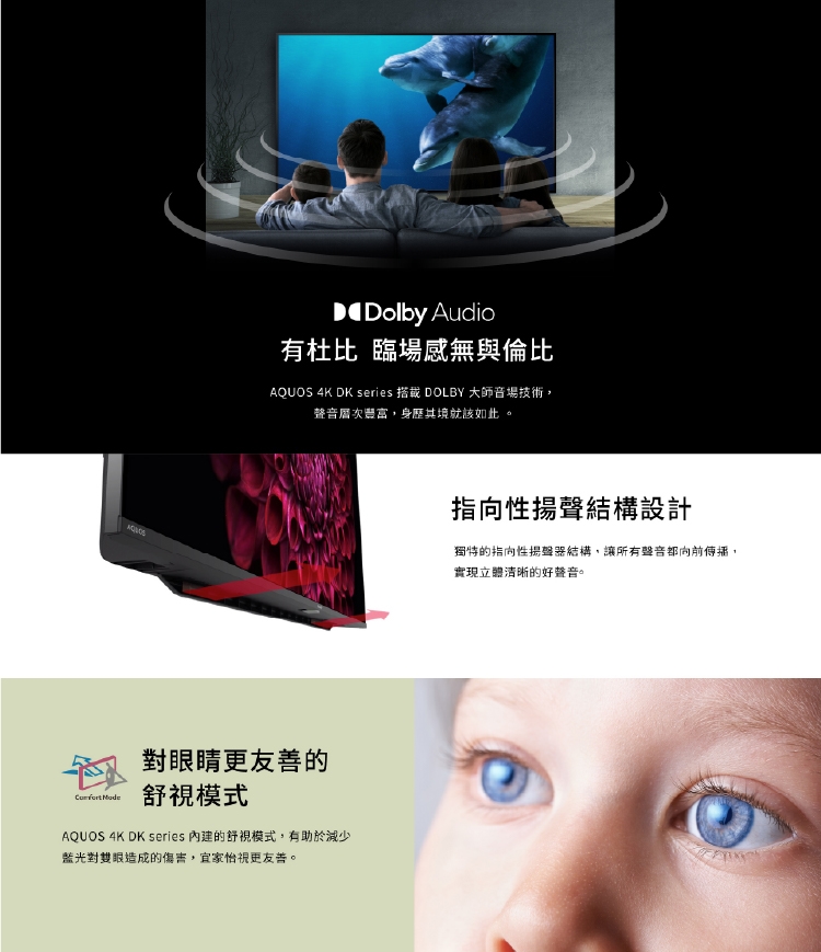 影音觀賞模式:使用者/標準/動態/舒適/電影/遊戲/節能