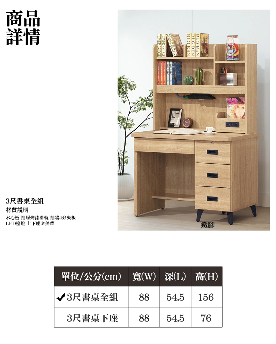 ※此賣場僅販售 瑞卡原切色3尺書桌全組※