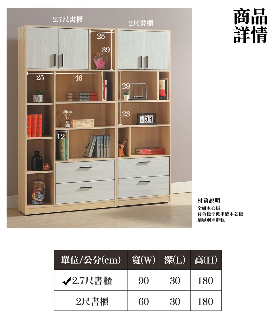 ※此賣場僅販售 敦曼雙色2尺雙門二抽書櫃※