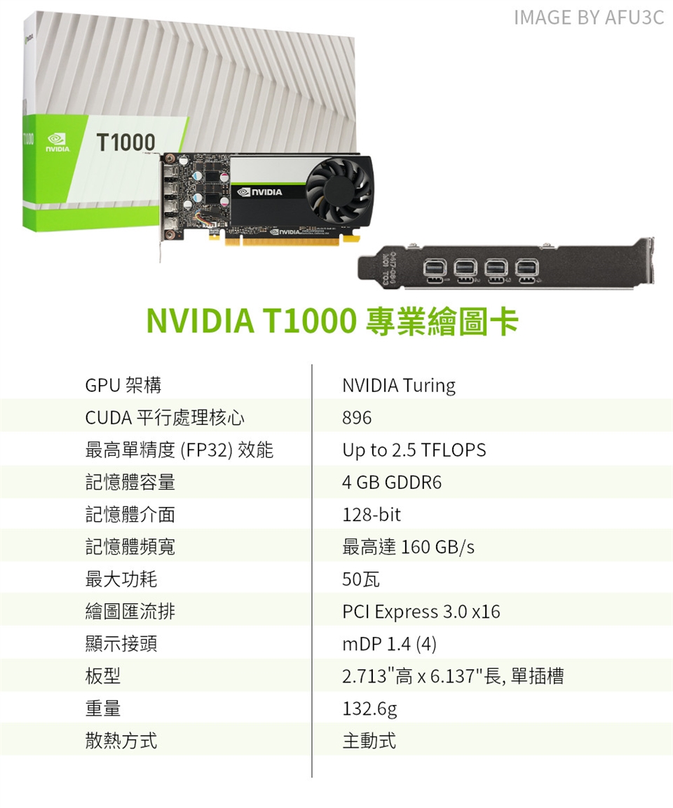 .顯示介面:麗臺 NVIDIA T1000 4GB GDDR6 專業繪圖顯示卡 (mDPx4)