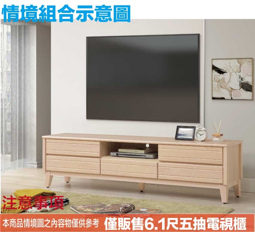 【文創集】瑞歐6.1尺五抽電視櫃 米白木紋色系+安心材質製造,使用放心+搭配居家更便利,採用防蛀木心板+實木防刮腳座+五金滑軌結構等安心材質製造 ,外層採用防潮耐磨噴漆處理搭配採用五抽屜+開放層格等收納空間設計,全由專人配送到家,專業安心服務,替你省下更多時間!