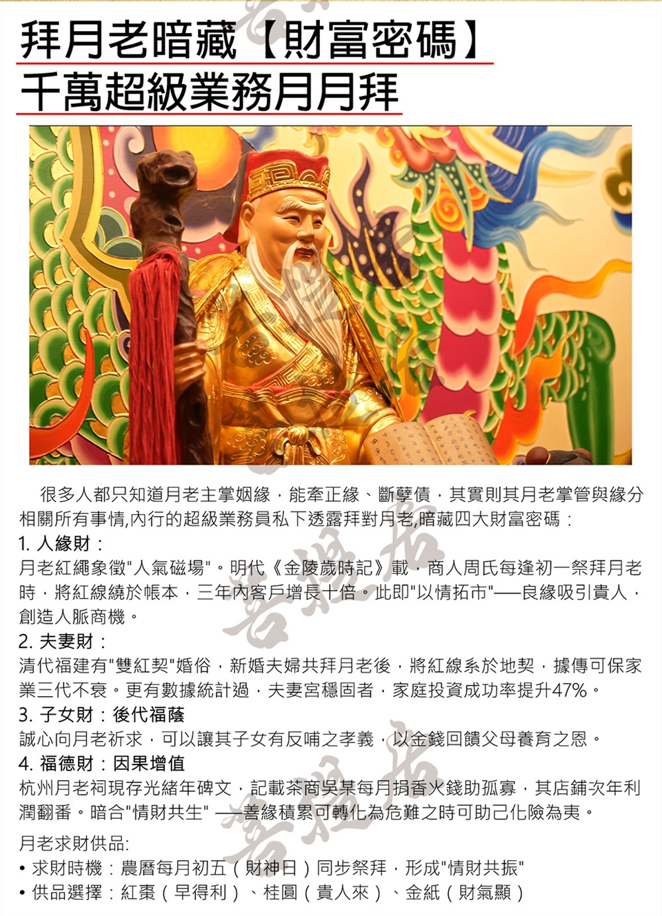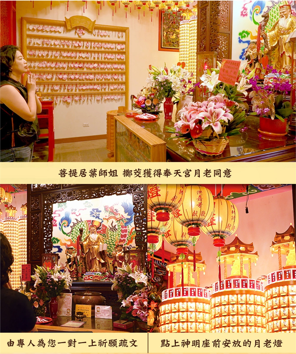 菩提居每月定期請專人上秉疏文、拍照,並在月老殿前點上月老燈
