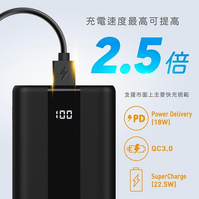 【USB Type-A】QC3.0 18W快充、Super Charge(華為) 22.5W快充、三星AFC快充